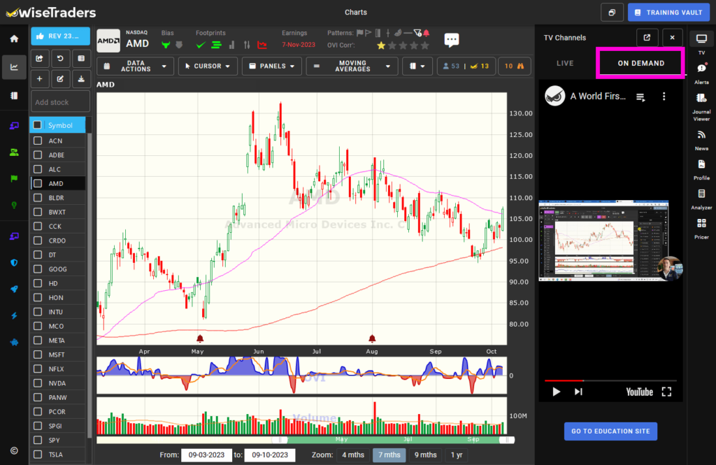 If you have multiple screens, you can pop out the video by mousing over the video itself where you’ll see a “picture-in-picture” icon, and if you only have one screen you can watch it next to the charts or maximize the video window to full screen. That’s your choice!